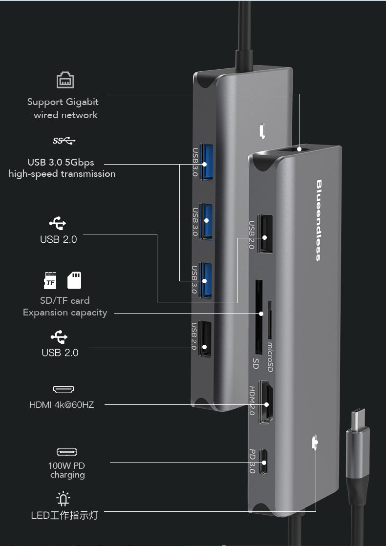 ransformă-ți laptopul sau tableta într-o stație de lucru completă cu Docking Station USB-C, un hub premium din aluminiu, elegant și rezistent. Cu o viteză de transfer de 10Gbps, încărcare rapidă Power Delivery 100W și port HDMI 4K la 60Hz, dispozitivul asigură performanță de top pentru muncă, gaming sau multimedia.Echipat cu mai multe porturi USB-C și USB-A de mare viteză, LAN Gigabit și cititor de carduri, docking station-ul permite conectarea simultană a mai multor periferice, oferind stabilitate și eficiență în orice mediu de lucru.Compatibil cu Windows, MacOS și Linux, acest hub USB-C este alegerea ideală pentru utilizatorii care doresc productivitate maximă, transfer rapid de date și conectivitate extinsă într-un design compact și modern.