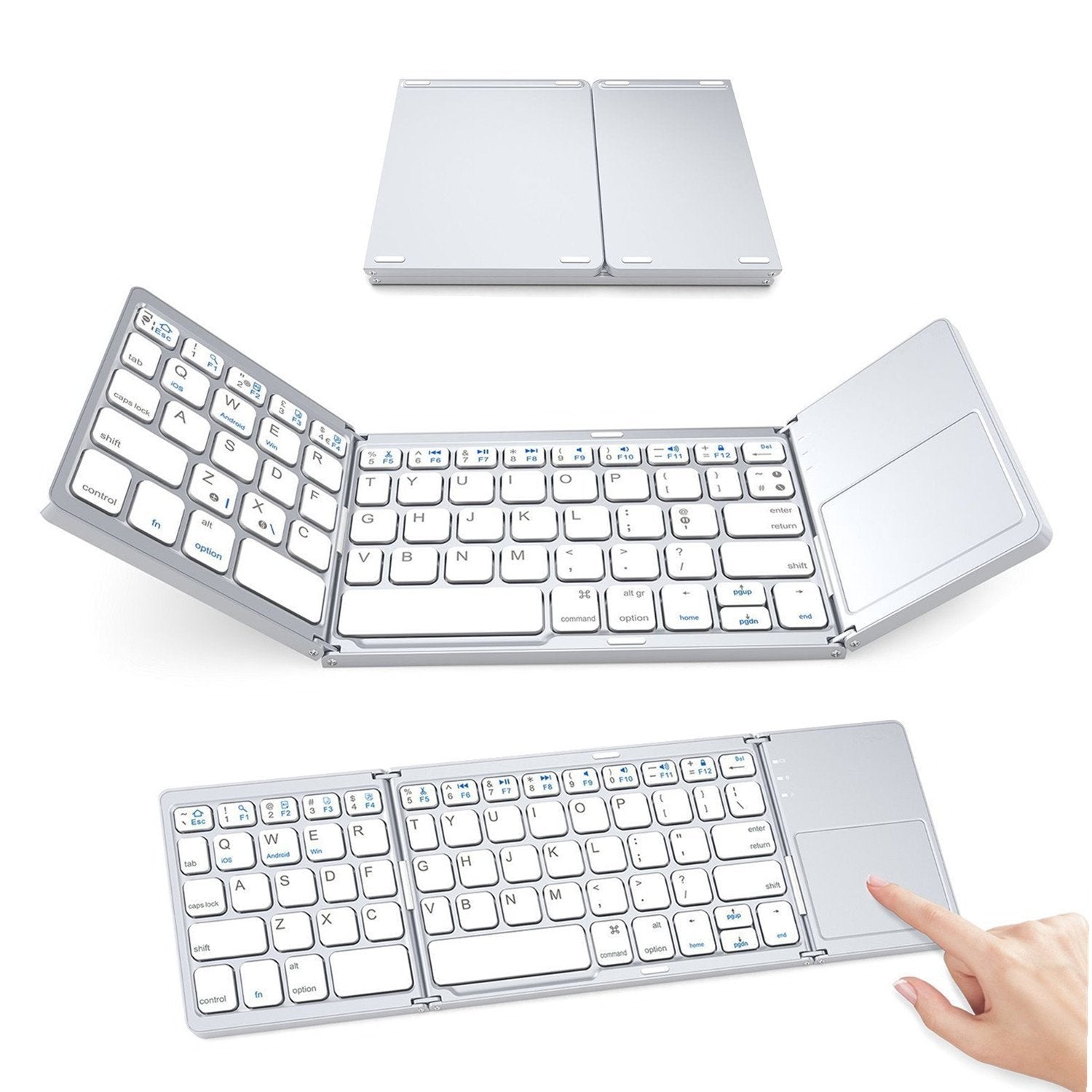 Tastatură Wireless Pliabilă Bluetooth 5.1 + 2.4G cu Touchpad Sensibil, Baterie Reîncărcabilă și Design Compact, culoare gri și silver